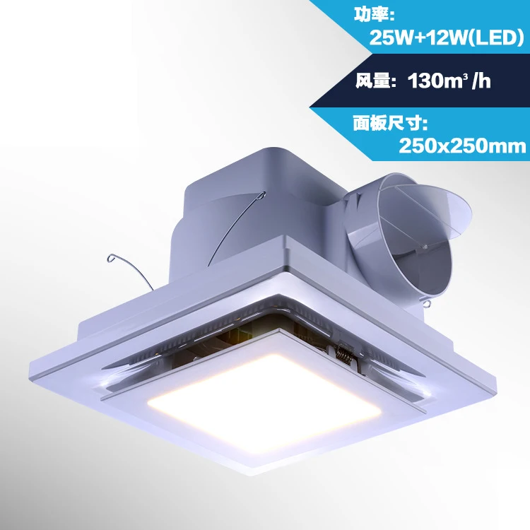 8-дюймовый потолочный вентилятор 250*250 мм, кухонный бесшумный вытяжной вентилятор со светодиодной подсветкой