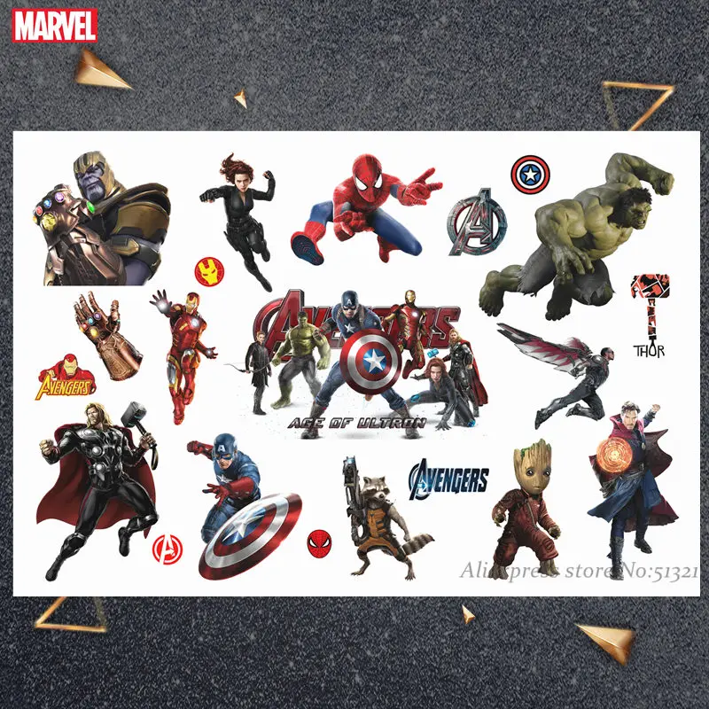 Детская Временная тату-наклейка Hasbro, Халк, Человек-паук, Марвел Мститель, для мальчиков, Мультяшные игрушки, водонепроницаемые, для вечеринок, подарок для детей