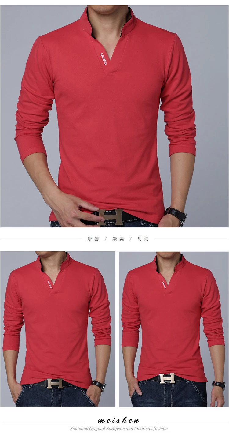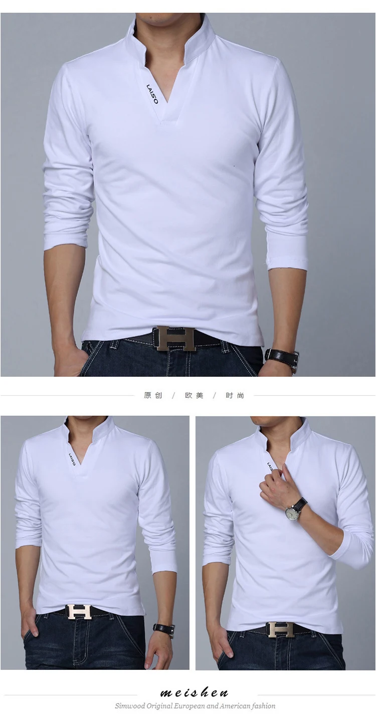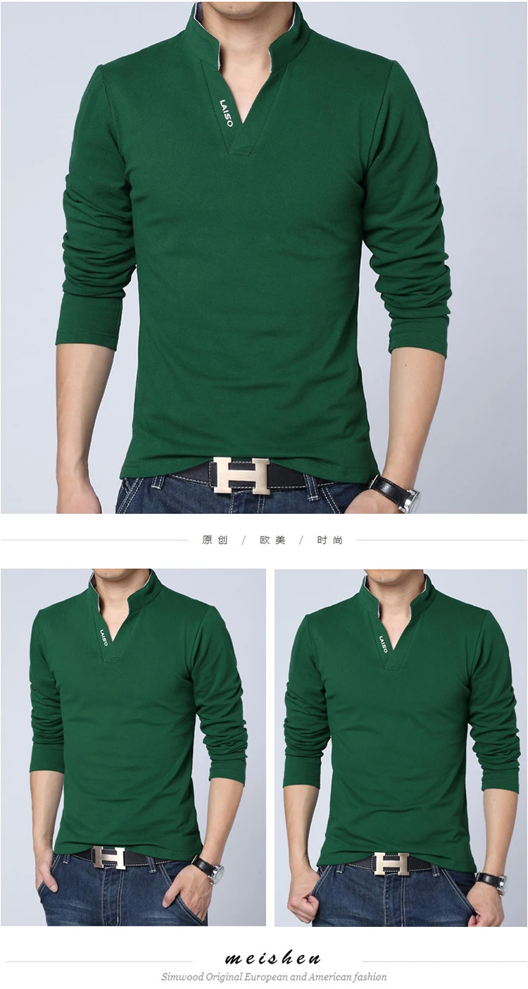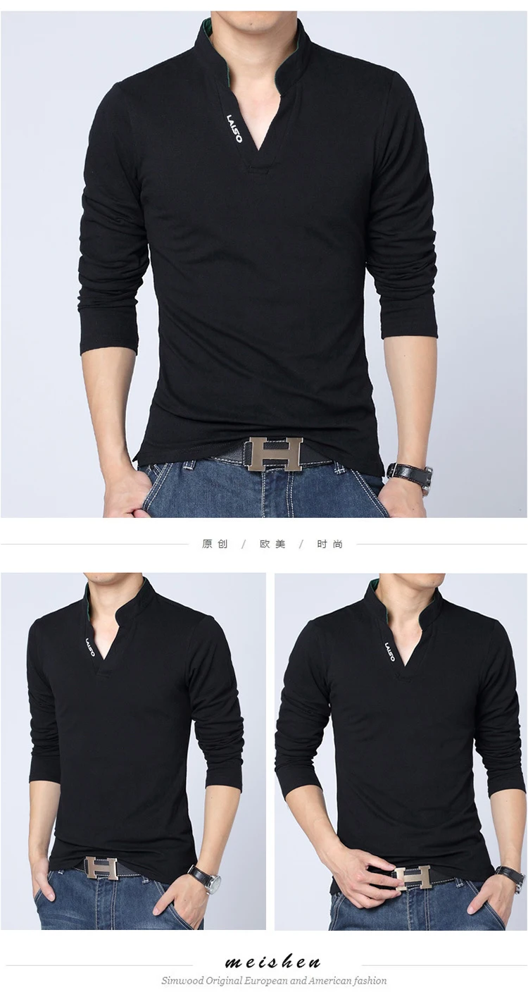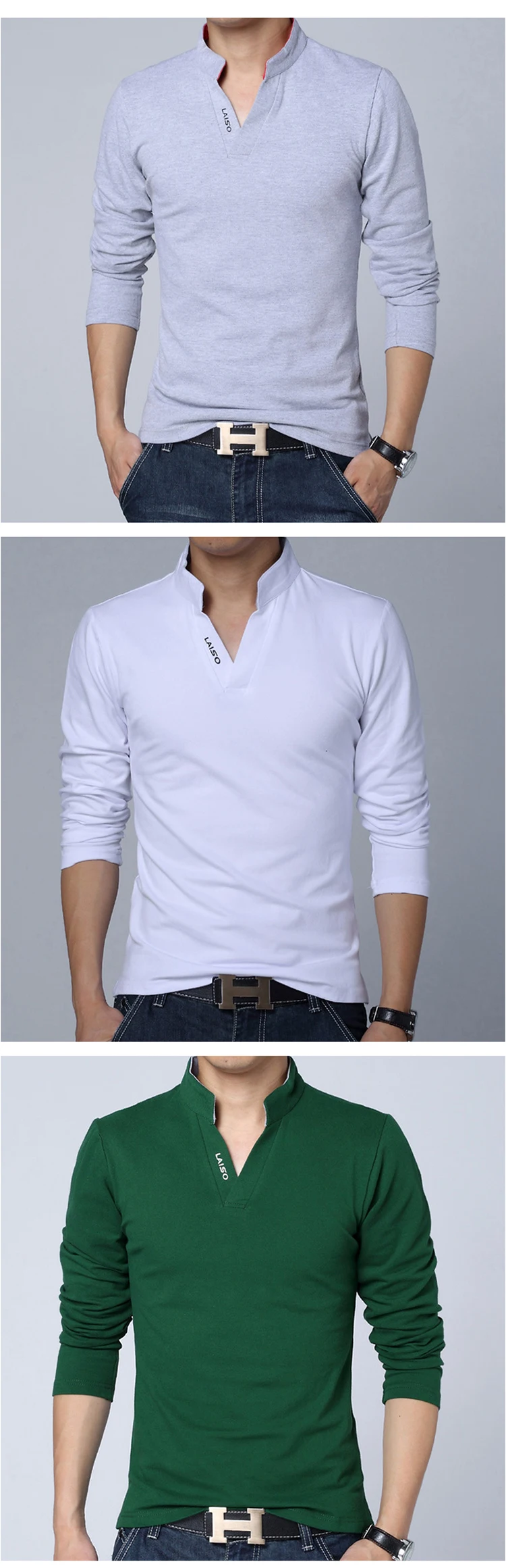 Новинка, осенняя модная мужская рубашка-поло QNPQYX, однотонная хлопковая рубашка-поло с длинным рукавом, облегающий топ с V-образным вырезом и буквенным принтом LAISO