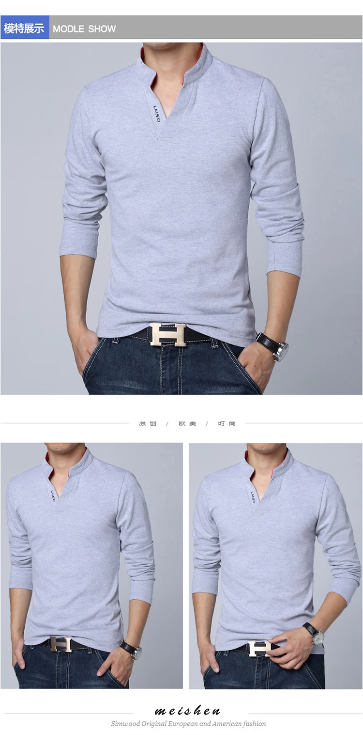 Мужская хлопковая футболка с длинным рукавом, с воротником-стойкой