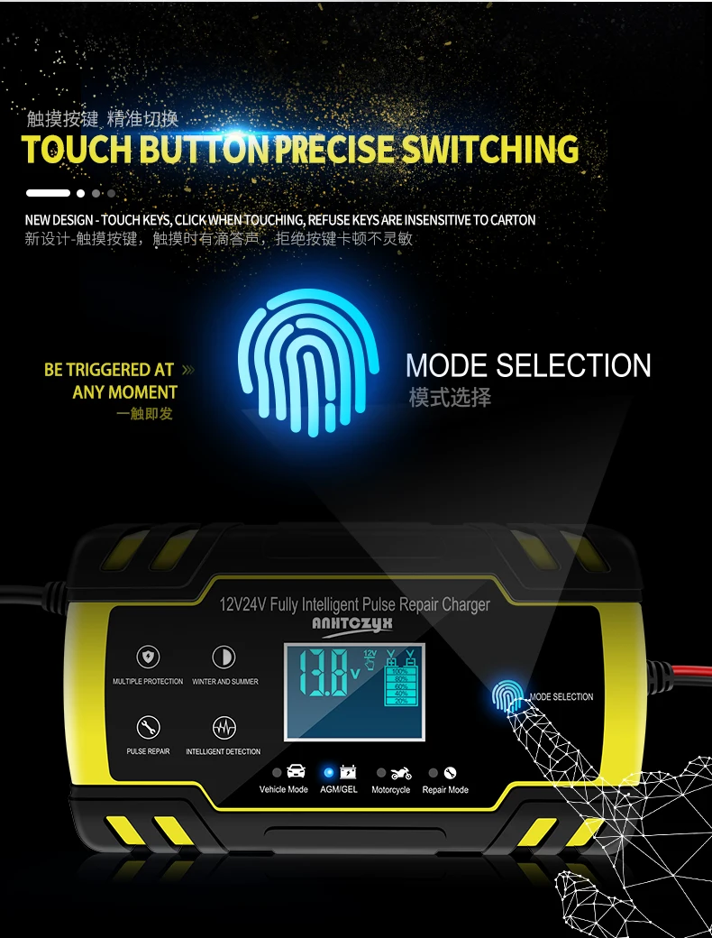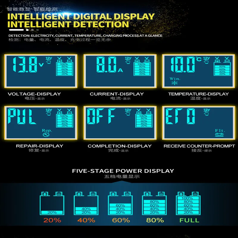 Полностью автоматическое автомобильное зарядное устройство 12 В, 8 А, 24 В, 4 а, умное быстрое зарядное устройство для AGM GEL wet, свинцово-кислотный, зарядное устройство с ЖК-дисплеем
