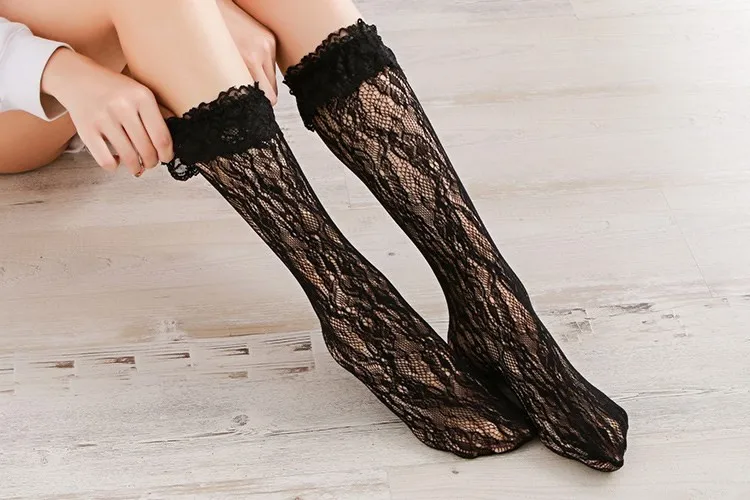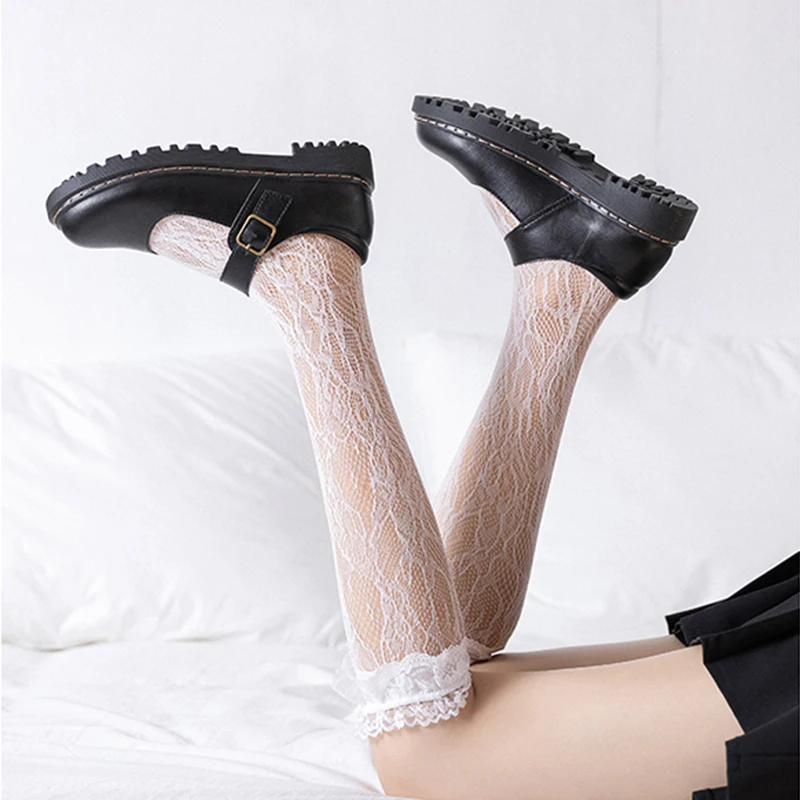 Кружевные чулки в стиле "Лолита", женские прозрачные гольфы, женски...