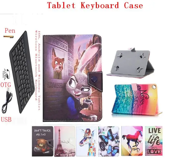 Универсальный чехол с мультипликационной клавиатурой 9,6, 9,7, 10, 10,1 дюймов, для Ipad, HP, Dell, Lenovo, Asus, Acer, для планшета Huawei, Samsung