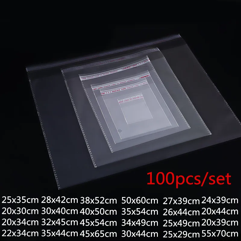 Прозрачные полипропиленовые пакеты разных размеров, 100 шт., самоклеящиеся пластиковые пакеты, самоклеящиеся пакеты и мешки для конфет