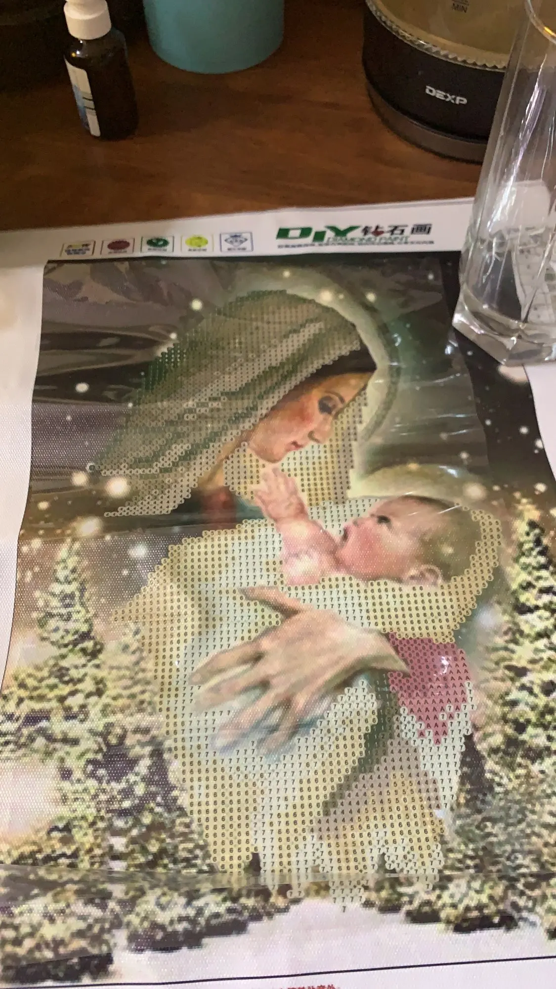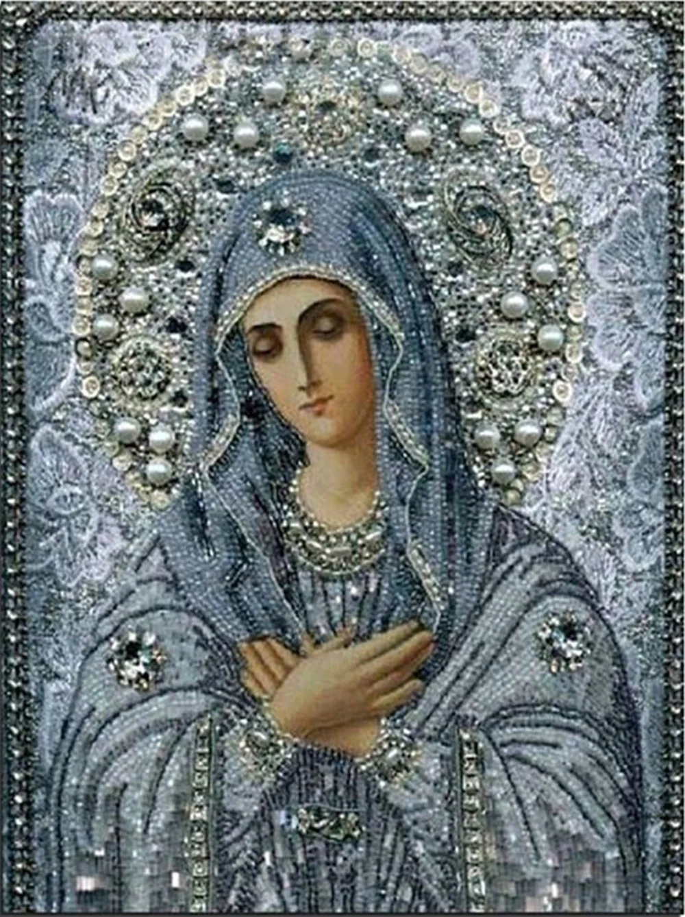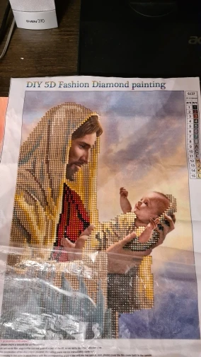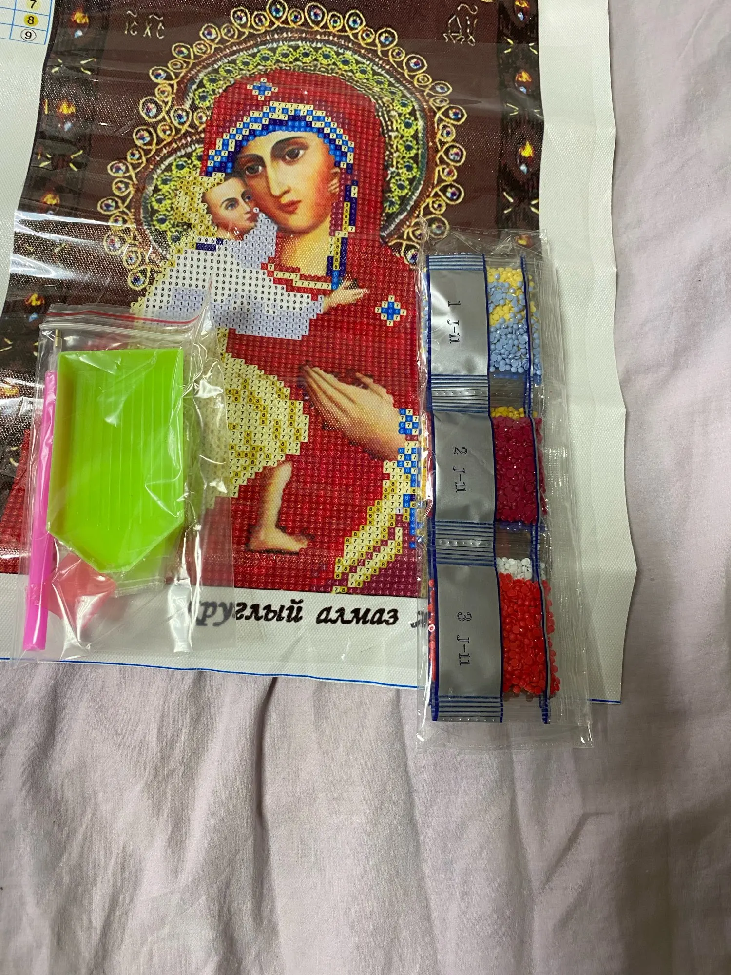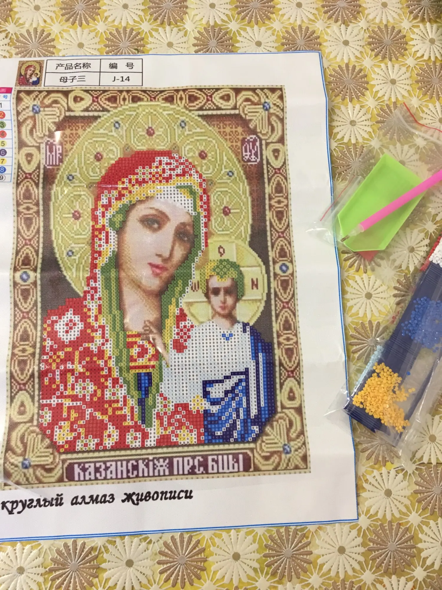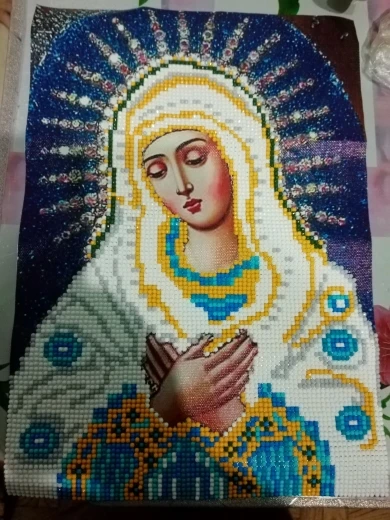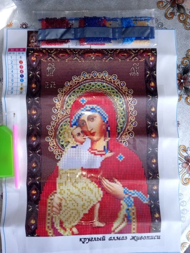 икона красивая, лик и Библия напечатаны, остальное нужно собирать, подарила матери, ее второй день не оторвать от алмазной вышивки