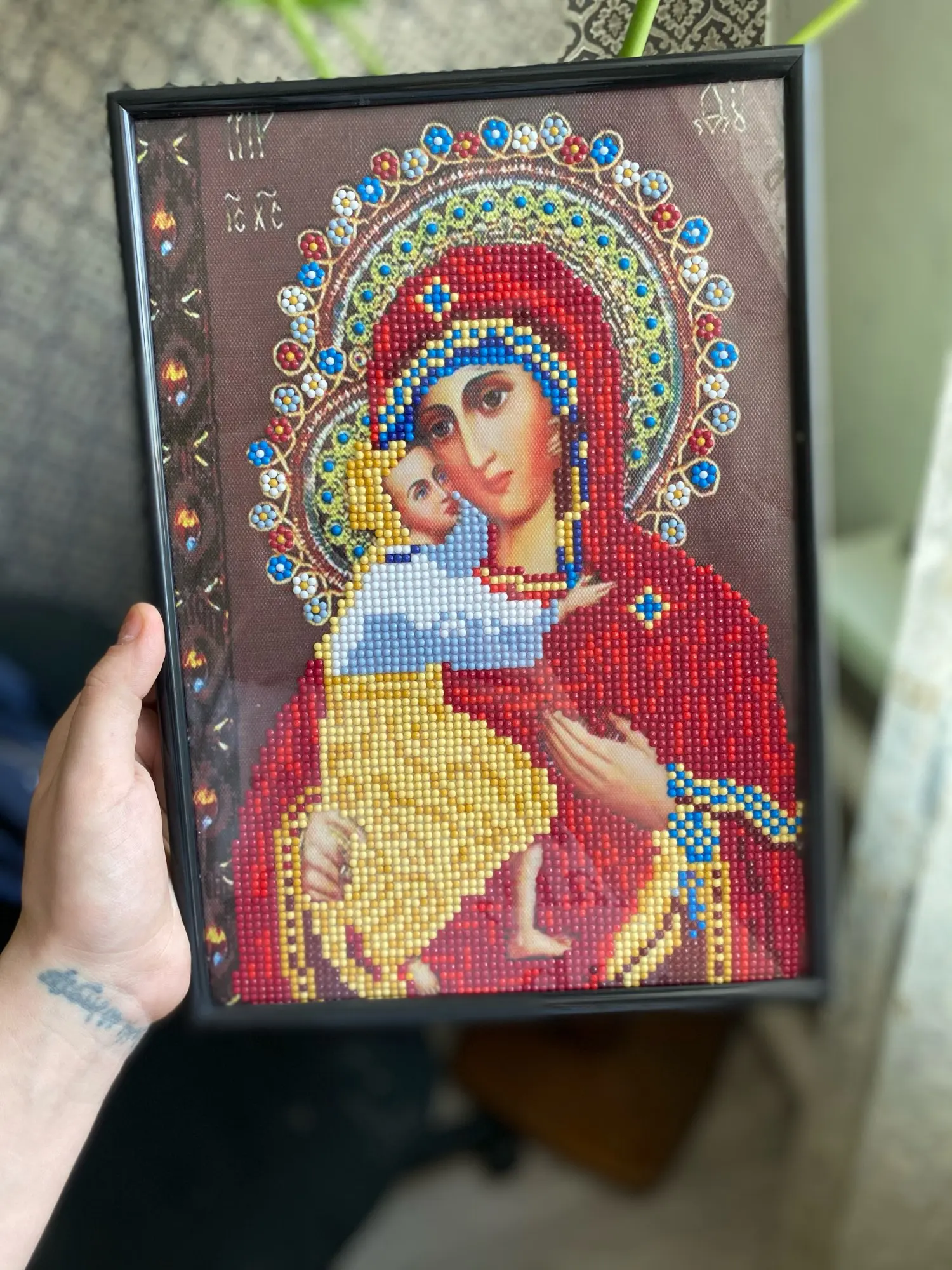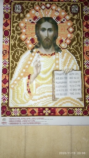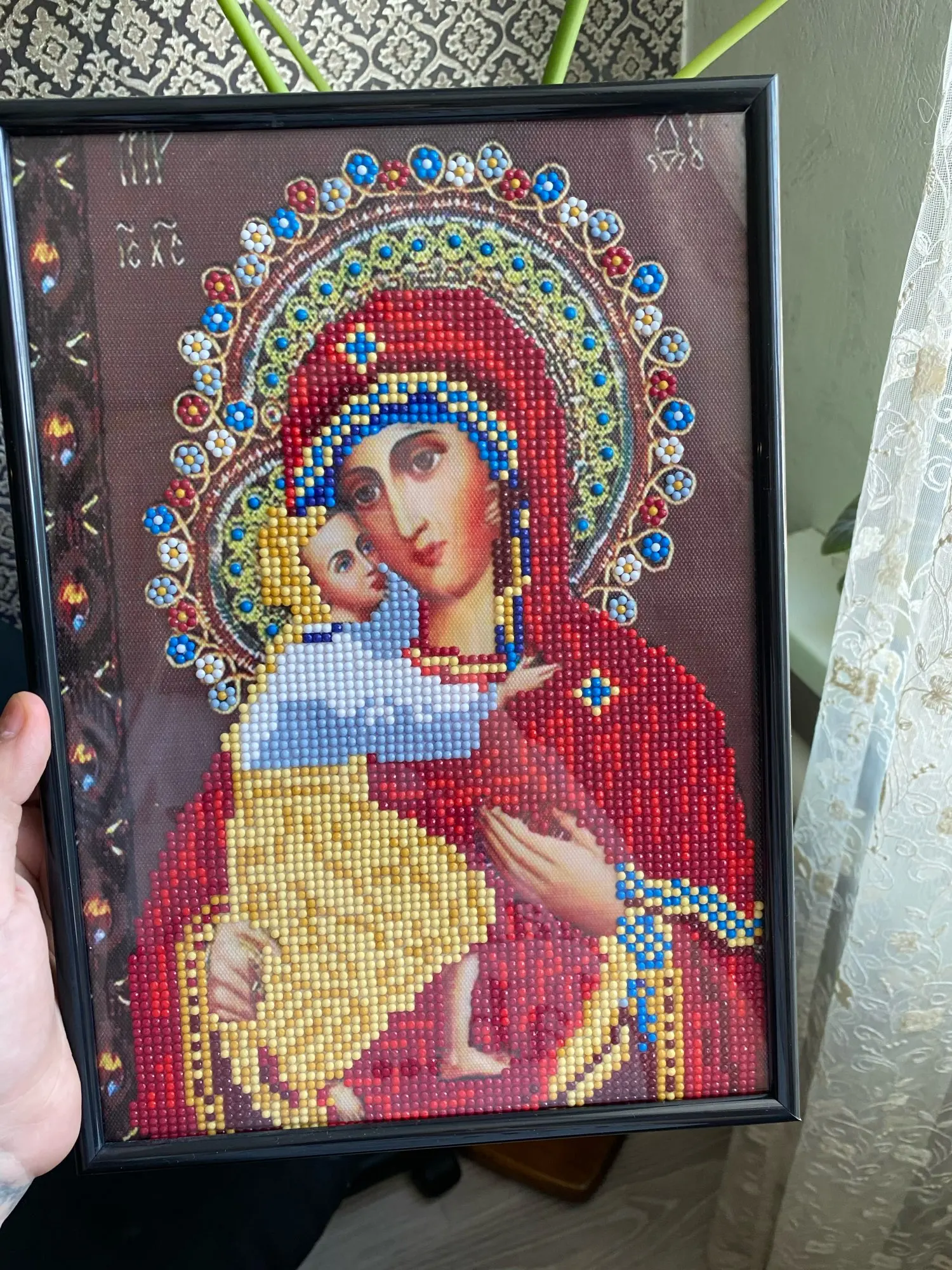 Фантастически быстрая отправка товара, буквально в течении 20 минут после оплаты товар был отправлен. Качество товара очень хорошее, качественный холст, стразы не много разные по размеру, но не существенно. В реальности на мой взгляд икона выглядит лучше чем на сайте.Мягкие тона страз похожи на мягкий ковёр и невероятно яркий оранжевый цвет как вспышка солнца на иконе.