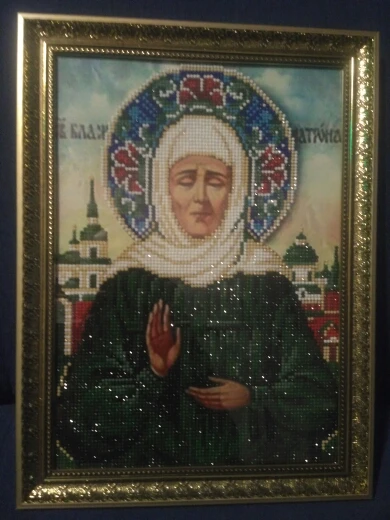 заказ получила. большое спасибо. выкладывается одежда святых, рамка и аура нарисованы.