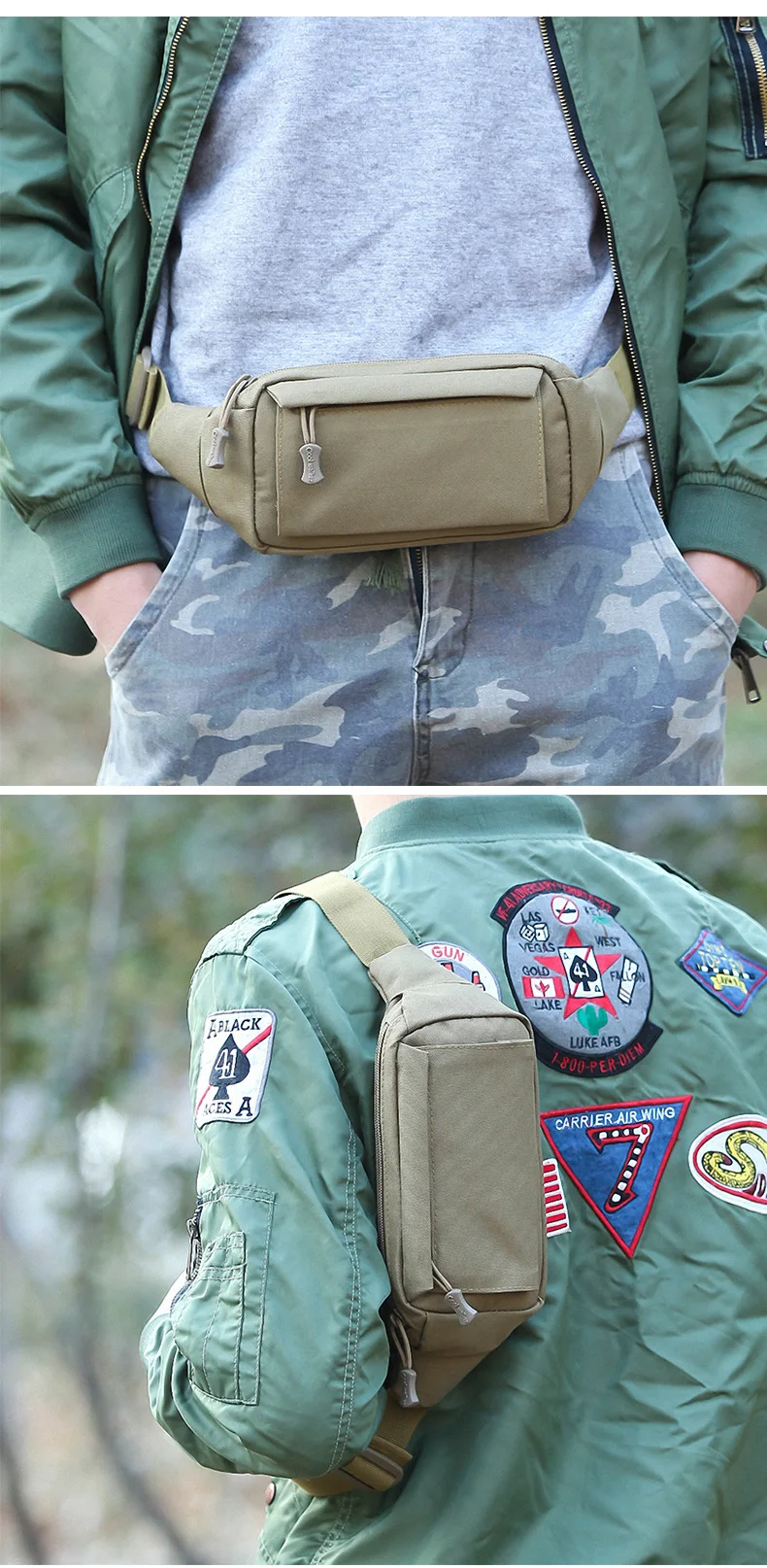 Параметры: Тип изделия: Поясная сумка Тип рюкзака: Мягкий Использование рюкзака: Кемпинг и туризм Тип застёжки: Молния Повод: Открытый Стиль: Спорт Материал: 800D Оксфорд Сведения о размере: 24 см * 11 см * 5,5 см Посылка тация:: 1 уличный поясной рюкзак ПримечаниеСветильник вая съемка и различные дисплеи могут привести к тому, что цвет товара на изображении немного отличается от реального. Допустимая погрешность измерения составляет +/- 1-3 см.