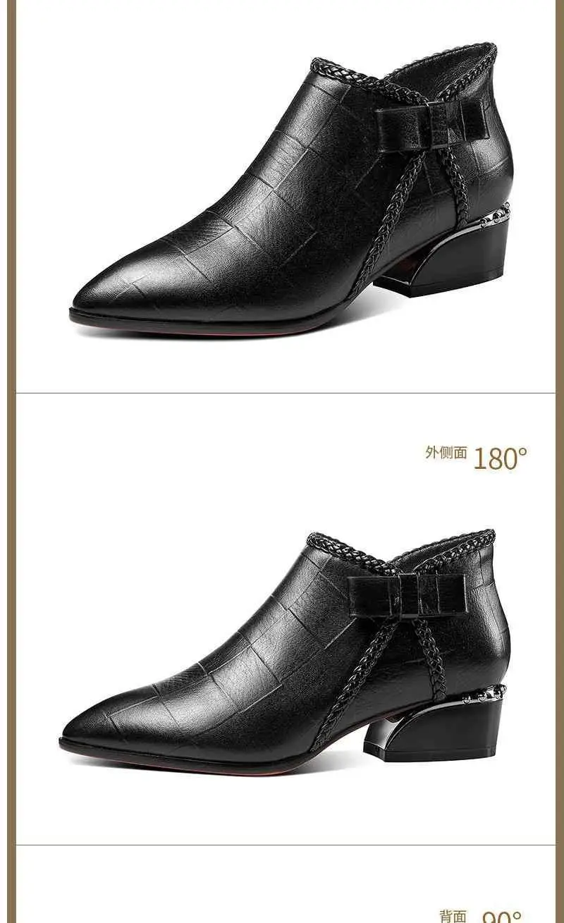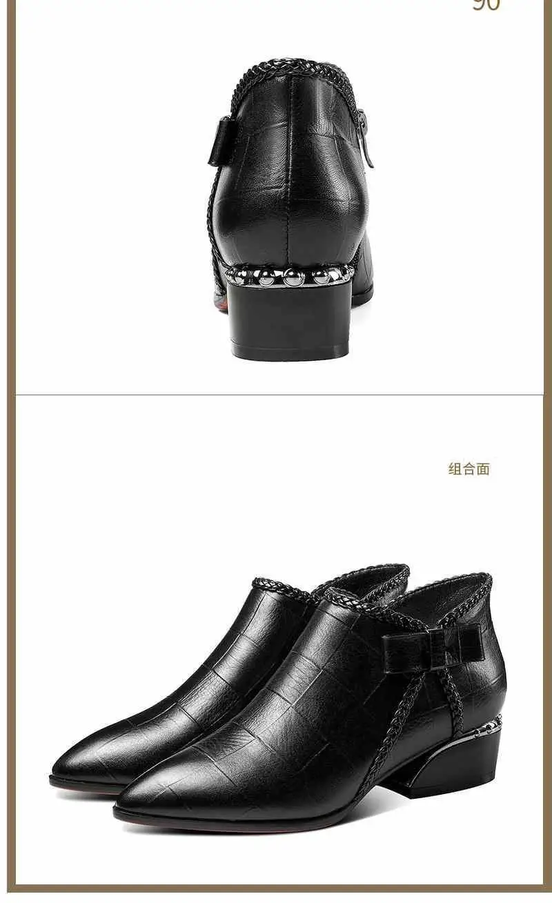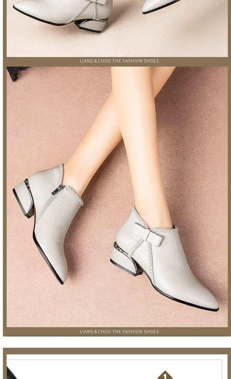 Женские ботинки с острым носком, бежевые ботильоны на квадратном каблуке, с узлом-бабочкой, на молнии, из искусственной кожи и резины, 2019