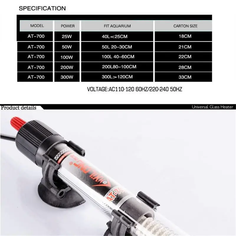 Погружной водонагреватель для аквариума, 25-300 Вт, нагревательный стержень из кварцевого стекла, взрывозащищенный нагревательный стержень для аквариума с контролем температуры