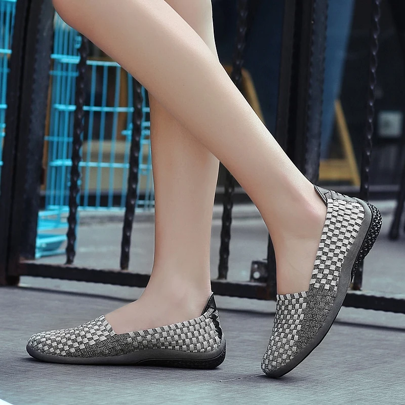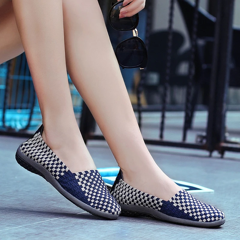 Женские лоферы без шнуровки, тканые, повседневные, дышащие, на плоской подошве, для весны, 2019, 566