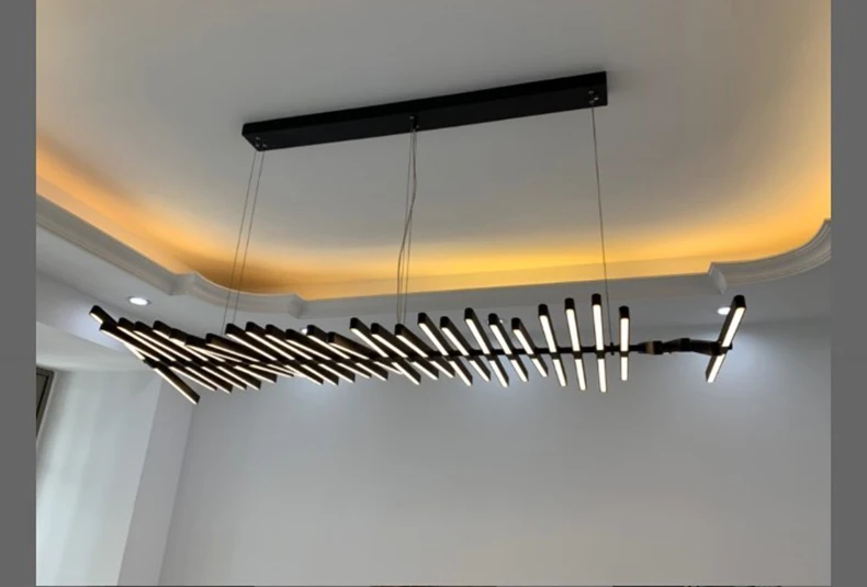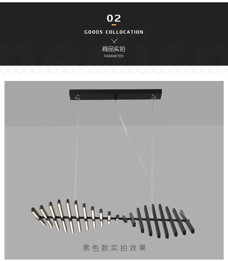 Светодиодный светильник в скандинавском стиле для гостиной, современный минималистичный дизайн, черный цвет, для домашнего ресторана, люстра, новинка, в форме рыбьей кости, офисные барные лампы