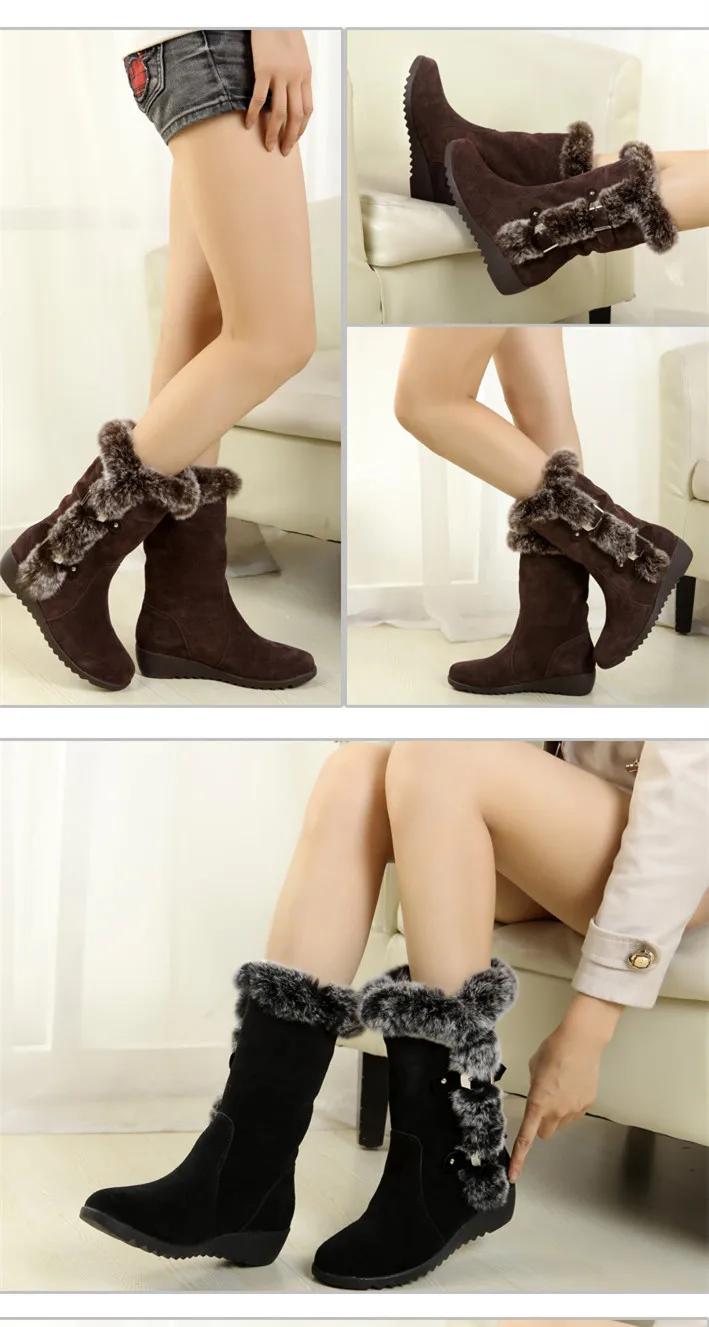Ботинки женские зимние, теплые, до середины икры, без застежек, с круглым носком, на танкетке, зимние, размера плюс, 42