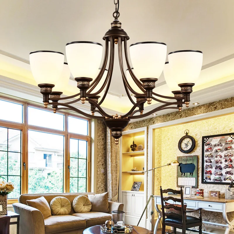 Американская люстра в средиземноморском стиле, стеклянный абажур, железная Люстра для гостиной, сельская лампа для столовой, спальни