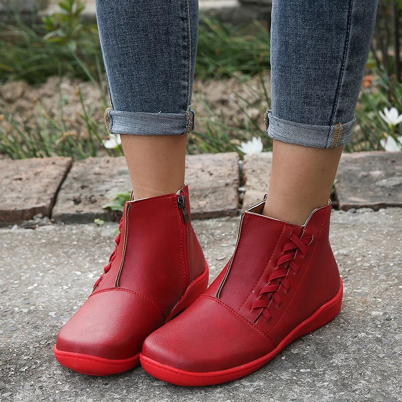 Ботильоны женские из искусственной кожи, Винтажные ботинки в стиле ...