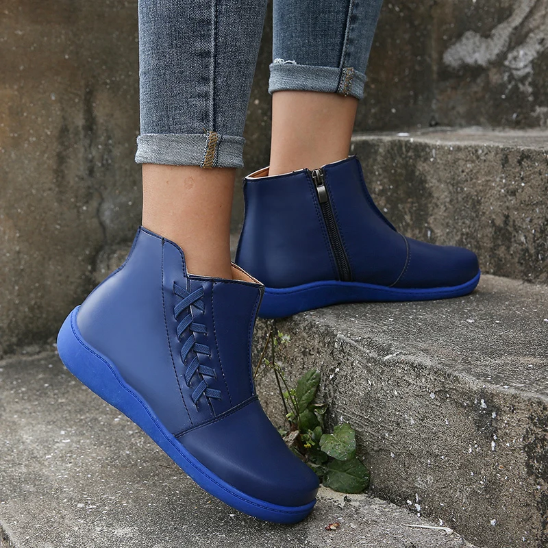 Женские ботинки из флока, с круглым носком, на застежке-молнии