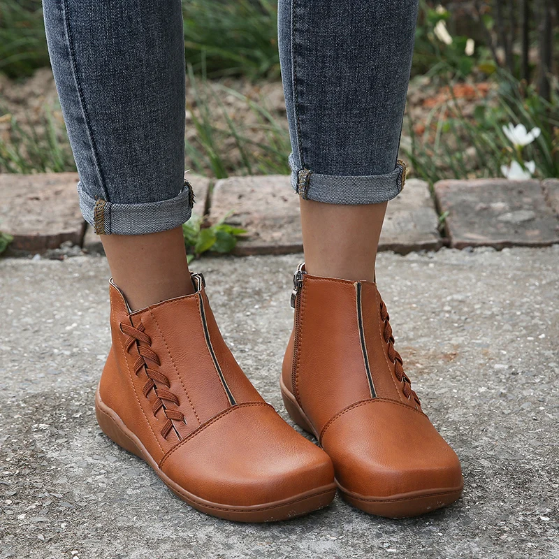 Женские ботильоны из искусственной кожи на молнии, винтажные полуса...