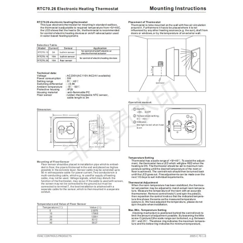 Напряжение: 220 В переменного тока Потребляемая мощность: 5 ва Диапазон контроля температуры: 5 ~ 40 градусов по Цельсию Диапазон температурного предела: 25 ~ 55 градусов по Цельсию Температура режима энергосбережения: 5 градусов по Цельсию Отклонение температуры: ± 0,5 к Температура окружающей среды: -5 ~ 50 градусов по Цельсию Степень защиты, обеспечиваемая корпусом: IP20 Внутренний датчик. (Вам не нужна внешняя линия датчика, пожалуйста, посмотрите более подробную информацию на изображении установки)