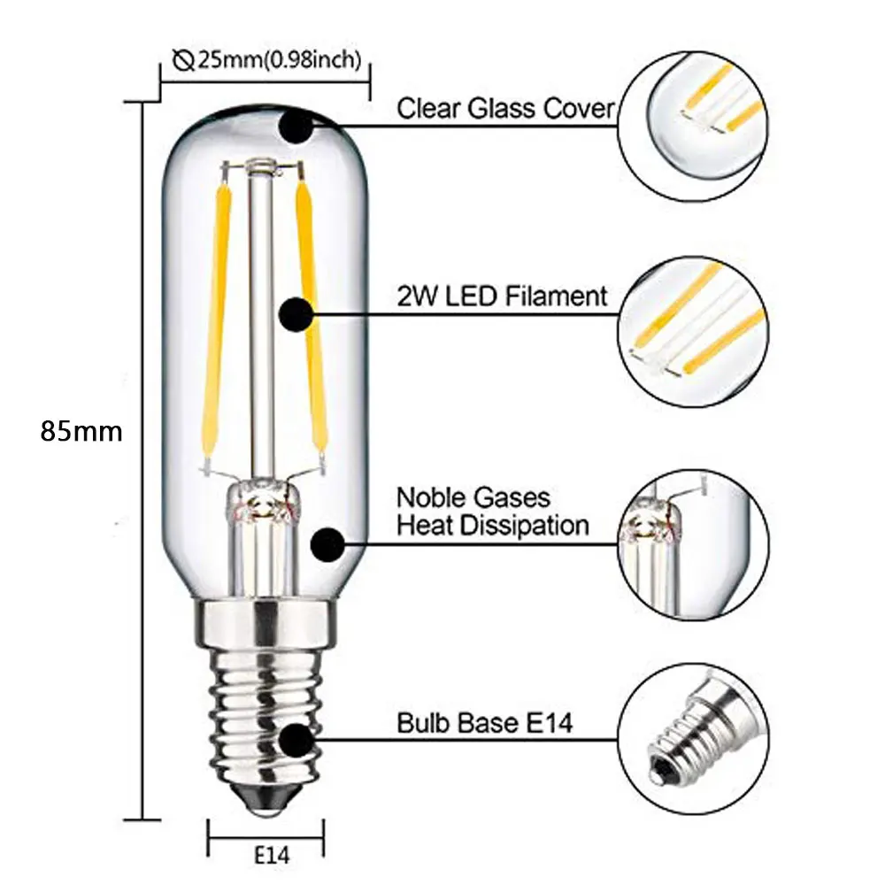 Светодиодная лампа для капота 2 Вт, 4 Вт, трубчатая лампа накаливания SES T26, светодиодная лампа E14 для холодильника, морозильной камерымикроволновой печикапота