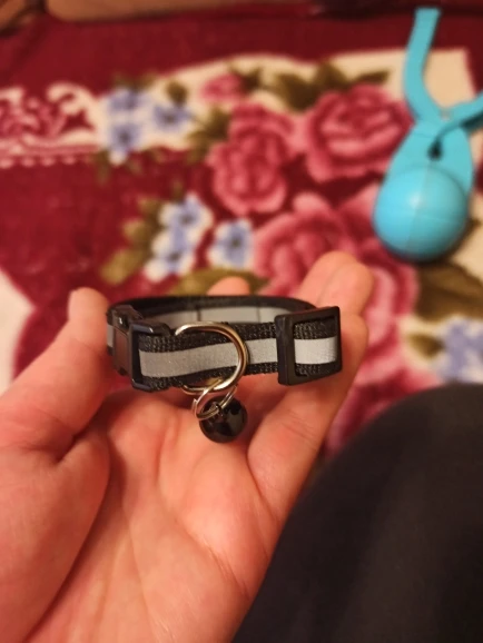 Отличный ошейник! Размер регулируется, на свету светиться. Колокольчик звенит звонко)) я очень довольна
