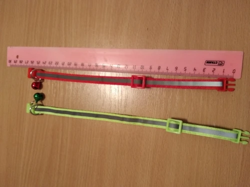 Доставка быстрая , размер реально соответствует ! 19,5 см на минимуме и 33 на максимуме. Качество отличное , нитки не торчат , ничего не пахнет. Колокольчики тоже качественные и звонкие, в цвет ошейников ! Спасибо. Очень рекомендую мелким собакам на дачу - той терьерам , чихуа, цверг пинчерам, а также кошкам.