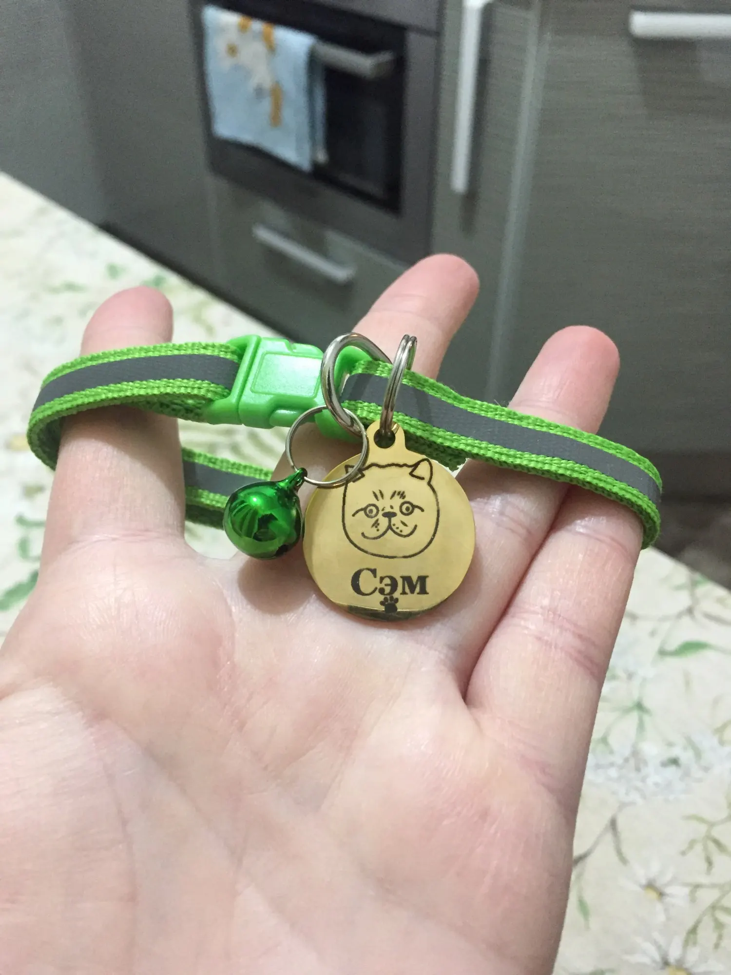Ошейник хороший, колокольчик лучше снять, так как мешает. Заказываю во 2 раз отсюда. Удобная застежка, светоотражающая полоса. Но цвет вместо зеленого пришел оранжевый.