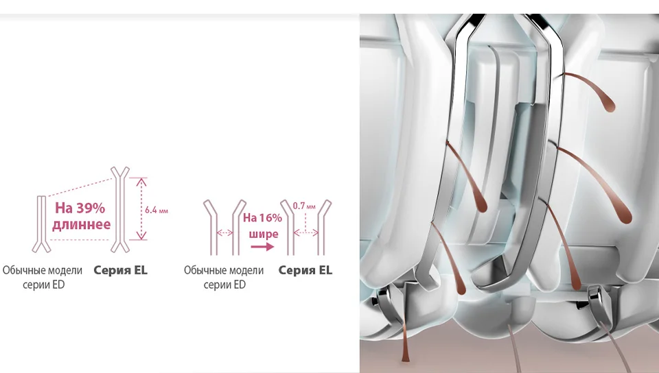 Два диска обеспечивают полное удаление волос, поскольку второй диск мгновенно захватывает волоски, пропущенные первым. Число пинцетов увеличено до 60 – настоящая революция в эпиляции, позволяющая удалять больше волос за одно движение.