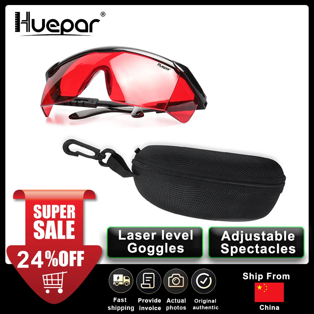 Лазерные очки Hueper для уровня красных очков, защитные очки для улучшения уровня, лазерные очки для лазерного нивелира