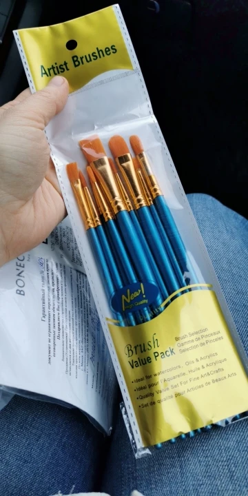 Кисти ооочень крутые, я художница и они как профессиональные, ворс приятный, при воздействии воды образуется острый кончик, всем рекомендую. Возможно они чуть чуть короче чем на фото, но это не существенно.(На фото они немного темные, это из за того что я ими уже рисовала, не обращайте внимания)