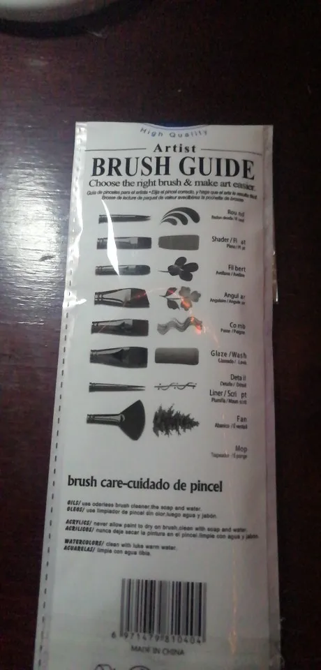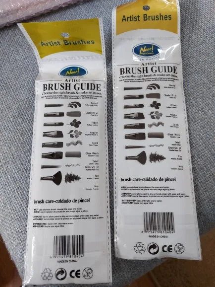Кончики куста мягкие и простые в использовании. Упаковка кистей поставляется с инструкциями на обратной стороне о том, как чистить щетку при работе с различными типами красок, также имеется пример рисования того, как краска будет выглядеть с помощью кисти. Я бы настоятельно рекомендовал создавать художников и людей, которые хотят начать рисовать.