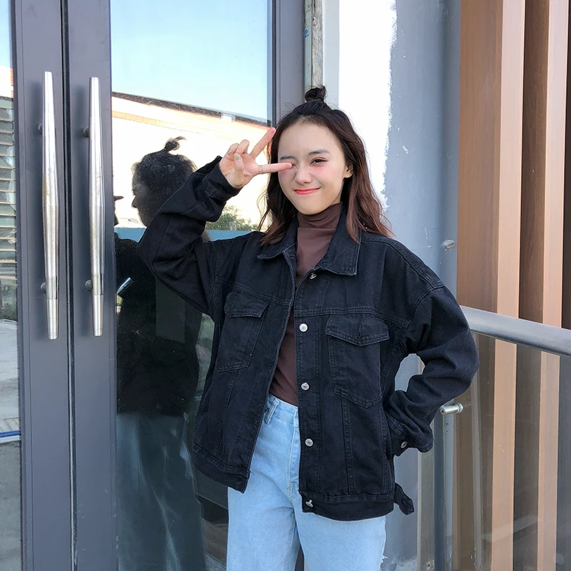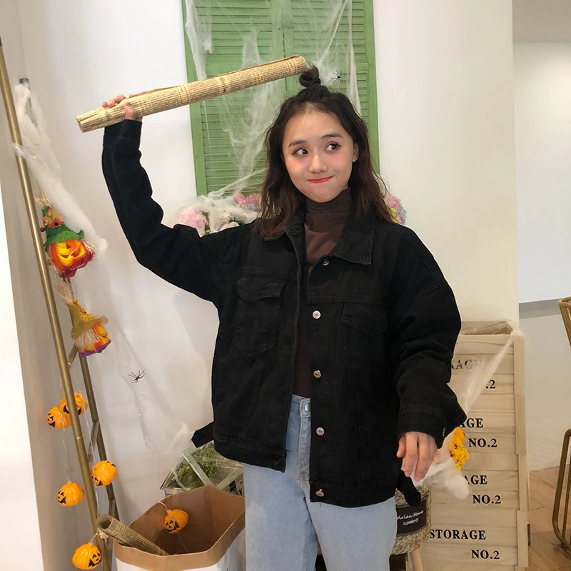 Женская джинсовая куртка, классическая черная однобортная куртка с карманами, в Корейском стиле, в стиле Харадзюку, повседневная верхняя одежда