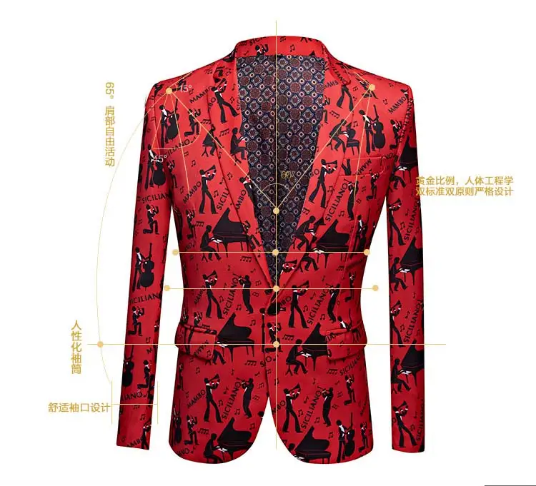 Мужской костюм с ярким принтом вечерние Джак с одной пряжкой, прита...
