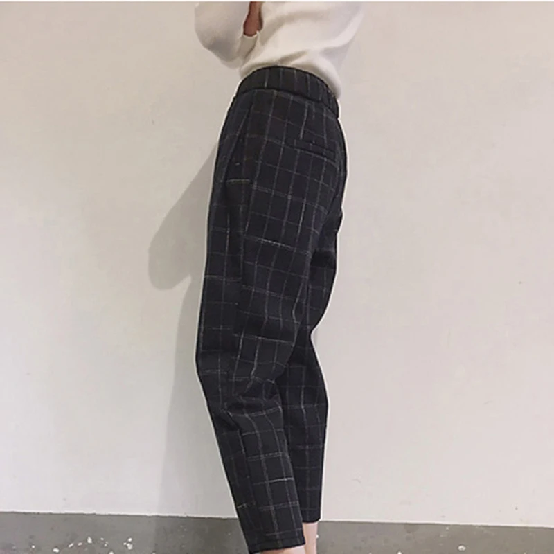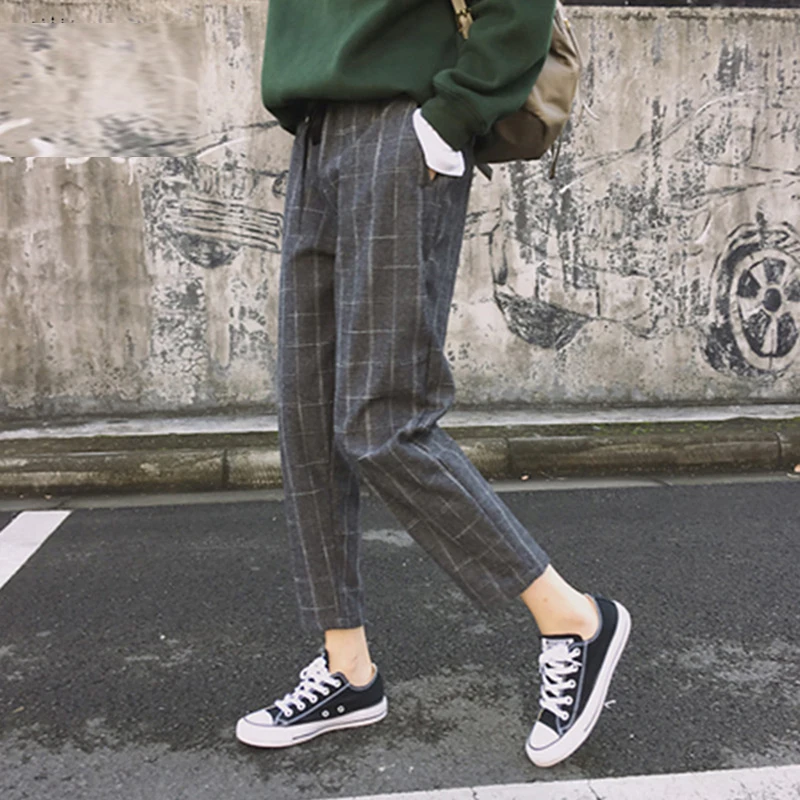 Брюки женские в клетку, Модные Винтажные классические повседневные свободные штаны-султанки с эластичным поясом, весна-лето