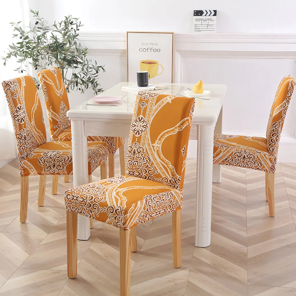 Эластичные чехлы на стулья, спандекс, чехол для обеденного стула, декоративный чехол на стул с цветочным принтом для кухни, свадьбы, банкета, отеля