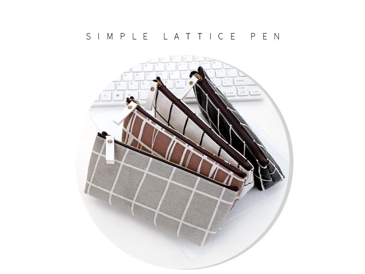 Простой полосатый клетчатый холст Школьный пенал Канцелярские прина...