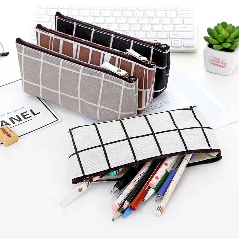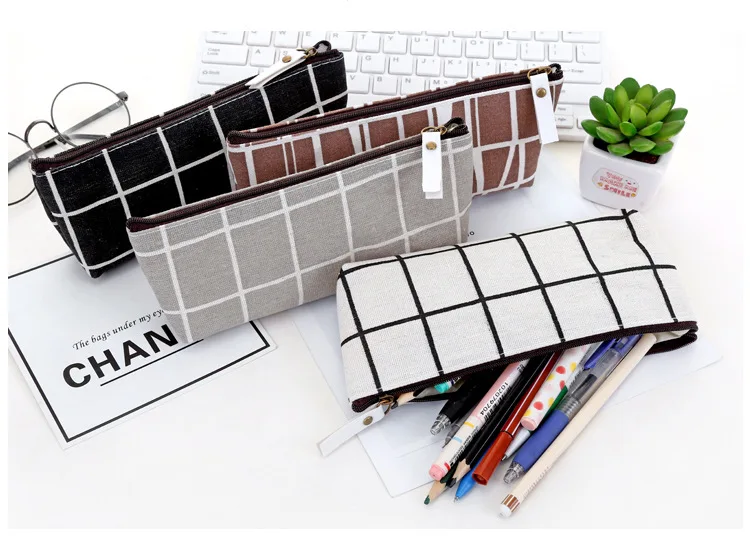 Простой клетчатый чехол для карандашей, большой холщовый чехол для ...