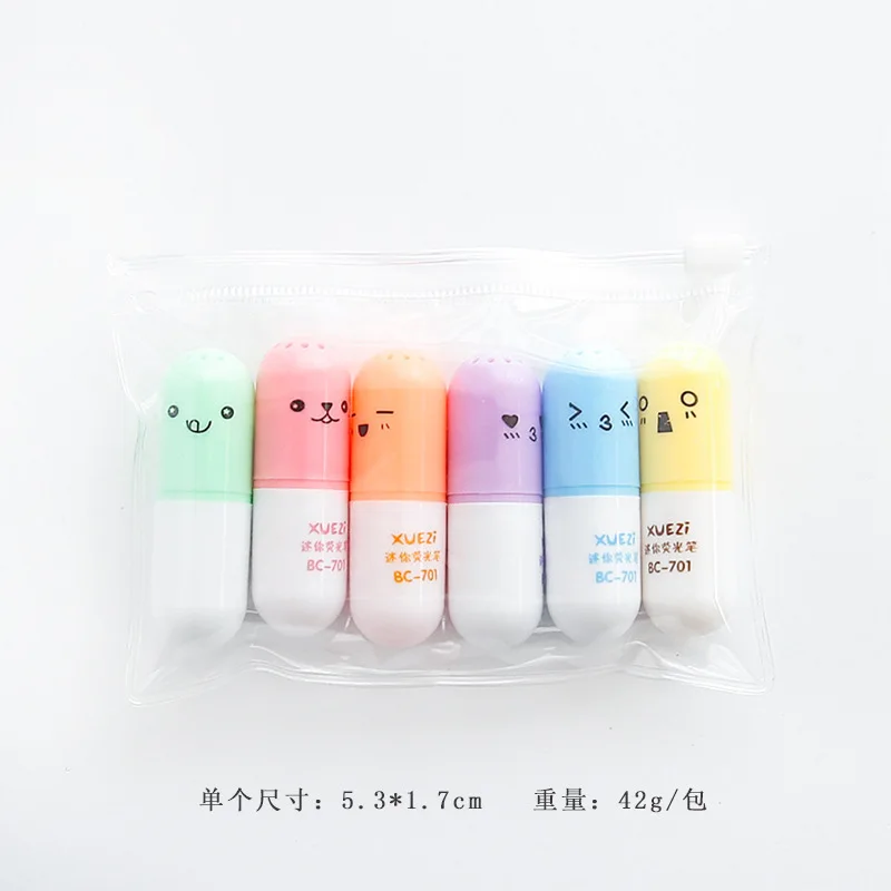 6 шт.лот капсулы хайлайтер Витаминные таблетки маркеры цветные ручк...
