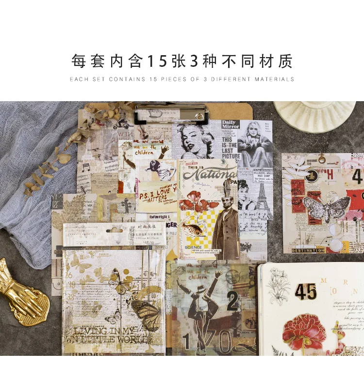 15 шт. декоративная рисовая бумага Ретро Скрапбукинг коллаж материа...