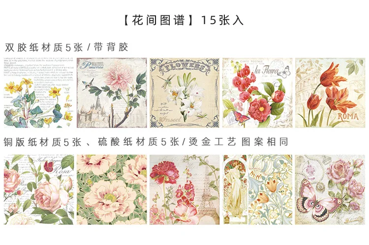 15 листовпартия, винтажный цветочный велюм, самоклеящийся бумажный ...