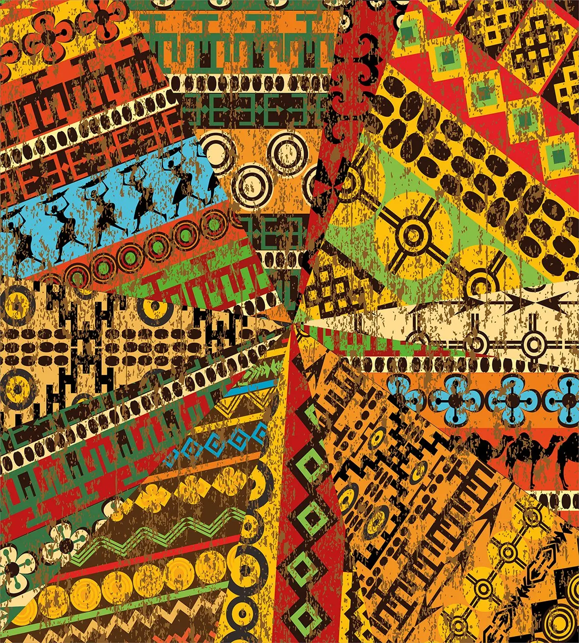 Комплект постельного белья из 3 предметов, с Африканским пододеяльником, коллажем и мотивами, традиционное искусство, богато украшенный геометрическим рисунком