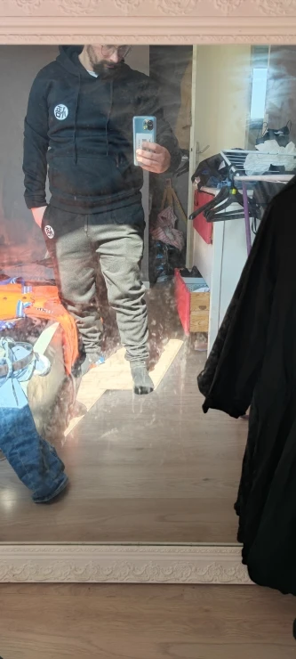 Pull XL bien, mais le pantalon trop serré, une taille au-dessus serait judicieux pour être à laisse