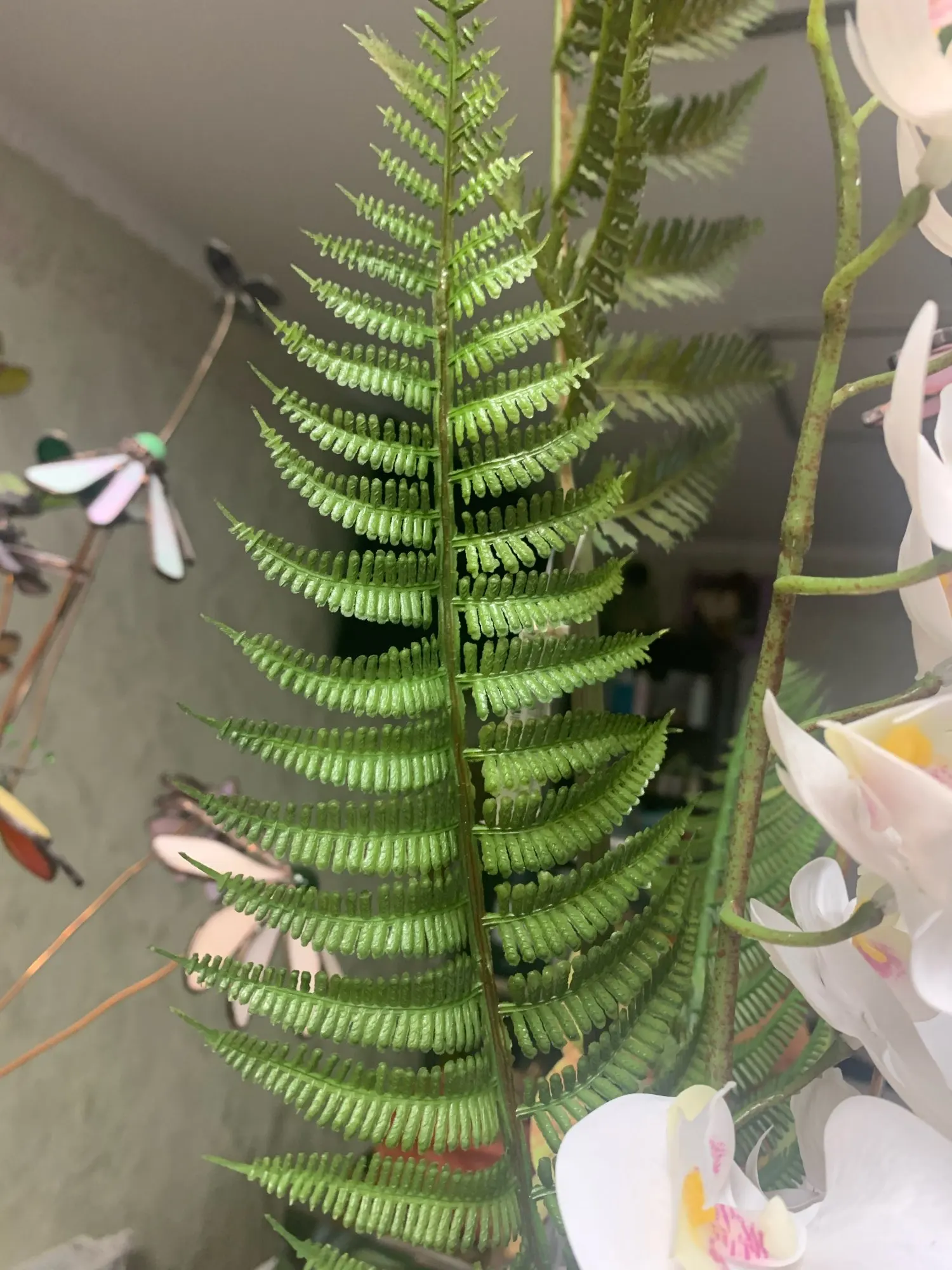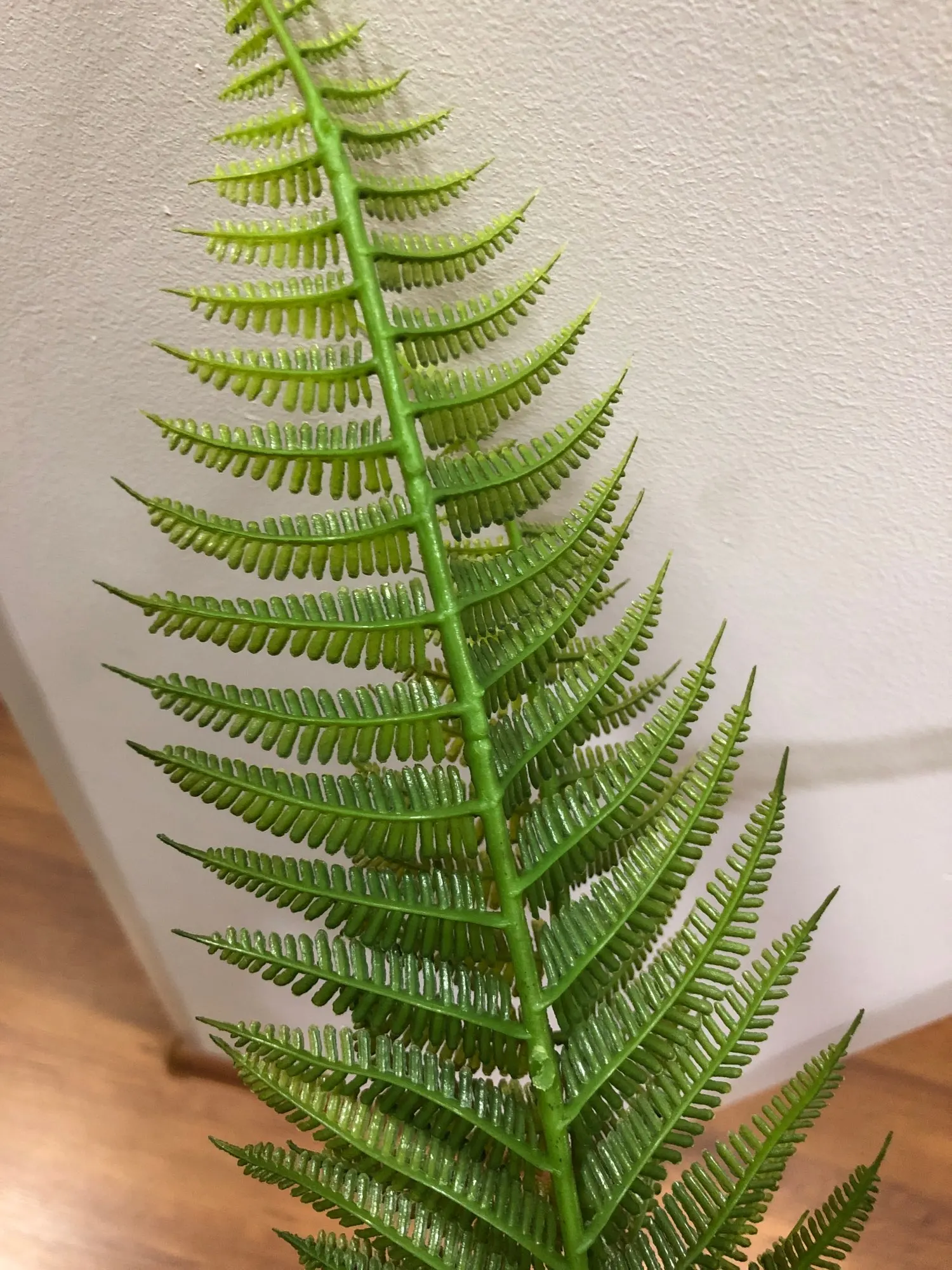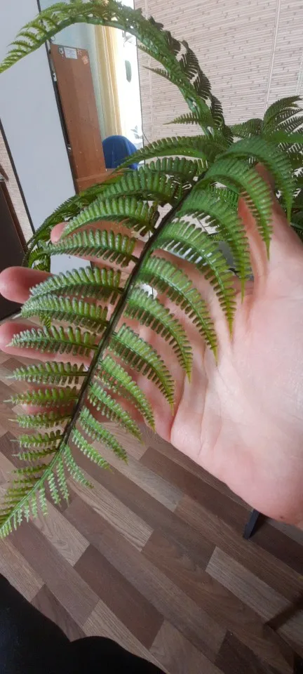 Доставка ровно месяц.Почти не помялся, хотя был просто в полиэтилене.Очень хороший папоротник, пластик/латекс аккуратно отлит,с лицевой стороны уже в полуметре от него - как живой.Изнанка более грубая,но некритично.Реалистичный на ощупь,гибкий, блеска почти нет.Единственное- он по ширине намного меньше, чем я думала,в 20 см вазе утонул, в букете его почти не видно.В самом широком месте см 10.Но он все равно замечательный! Большое спасибо продавцу!