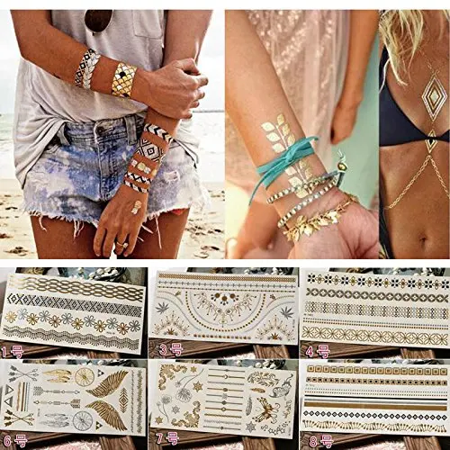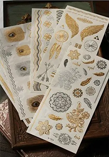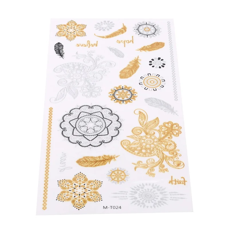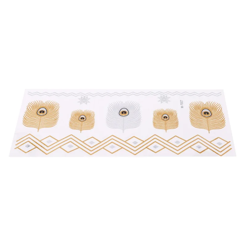 1 шт., винтажные временные тату-наклейки для женщин и детей, боди-арт, звездное перо, золотой металлик, Переводные флэш-тату для детей