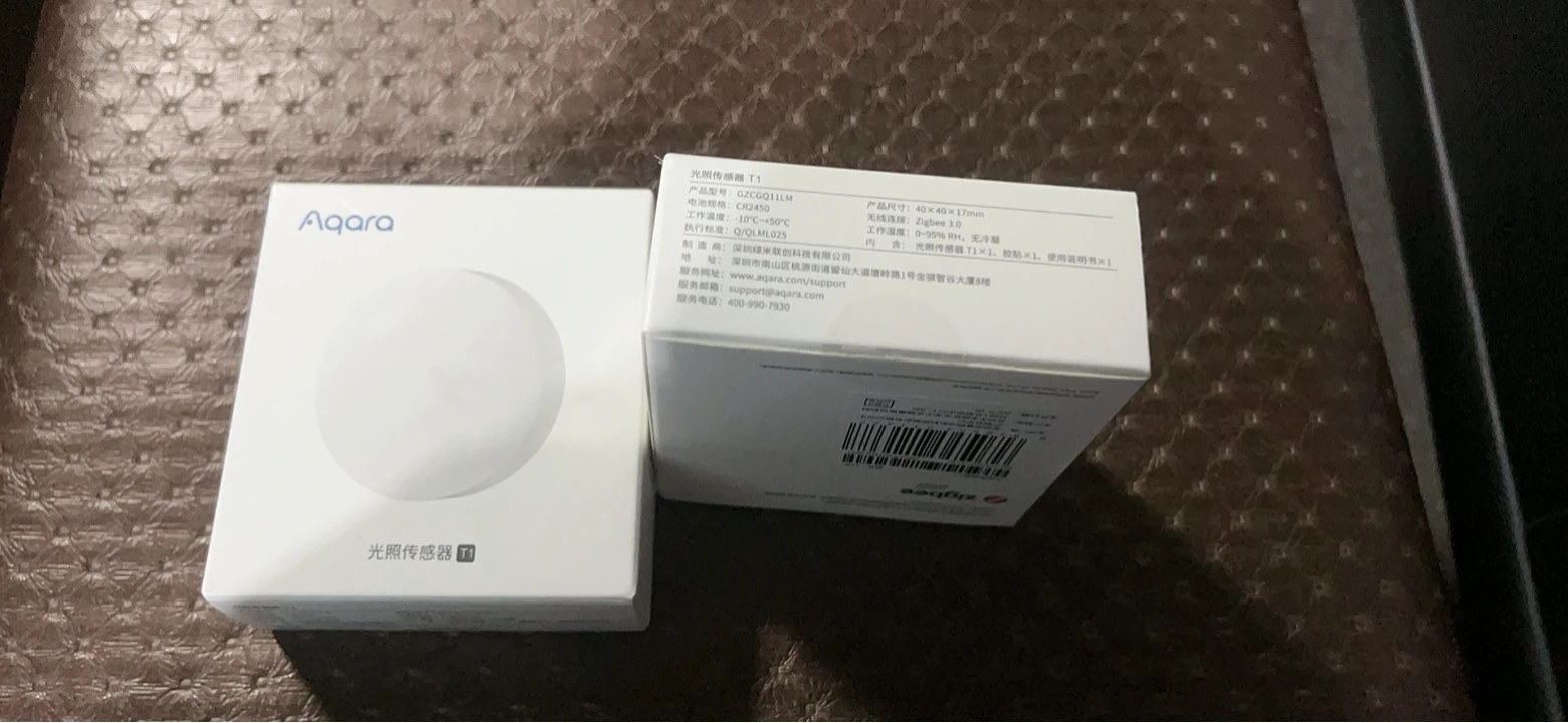 Датчик освещенности Aqara T1 и упаковочная коробка оформлены в белом, простом и щедром стиле, а рендеринг продукта также находится на упаковке.