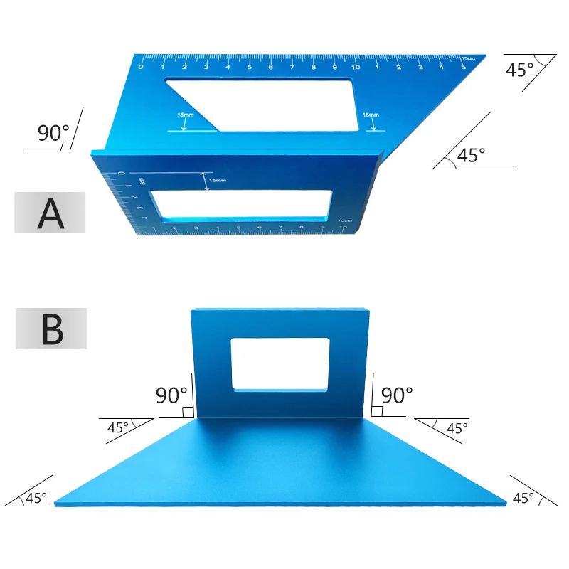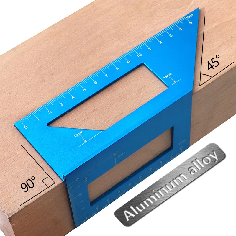 Угловая линейка, 45 градусов, 90 градусов, алюминиевый метрический калибр, деревообработка, параллельная квадратная линейка