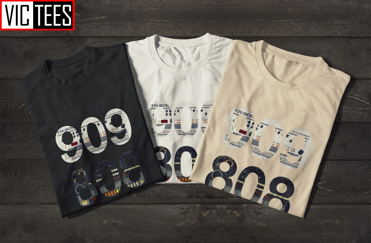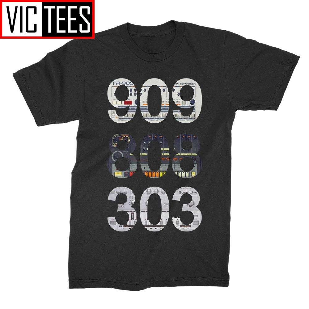Мужская футболка с принтом Roland 909 808 303, Классическая футболка из 100% хлопка с вырезом лодочкой и принтом барабана