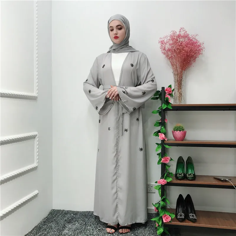 Турецкая исламская одежда мусульманское открытое абайя женское цветочное Макси-Платье С Бисером Дубай арабское длинное платье на шнуровке ислам Рамадан кафтан