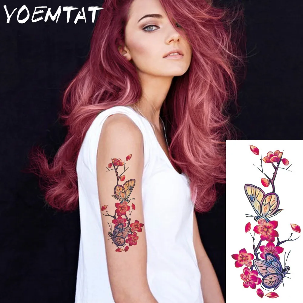Романтическая бабочка на плечо переводная татуировка розы цветы тат...