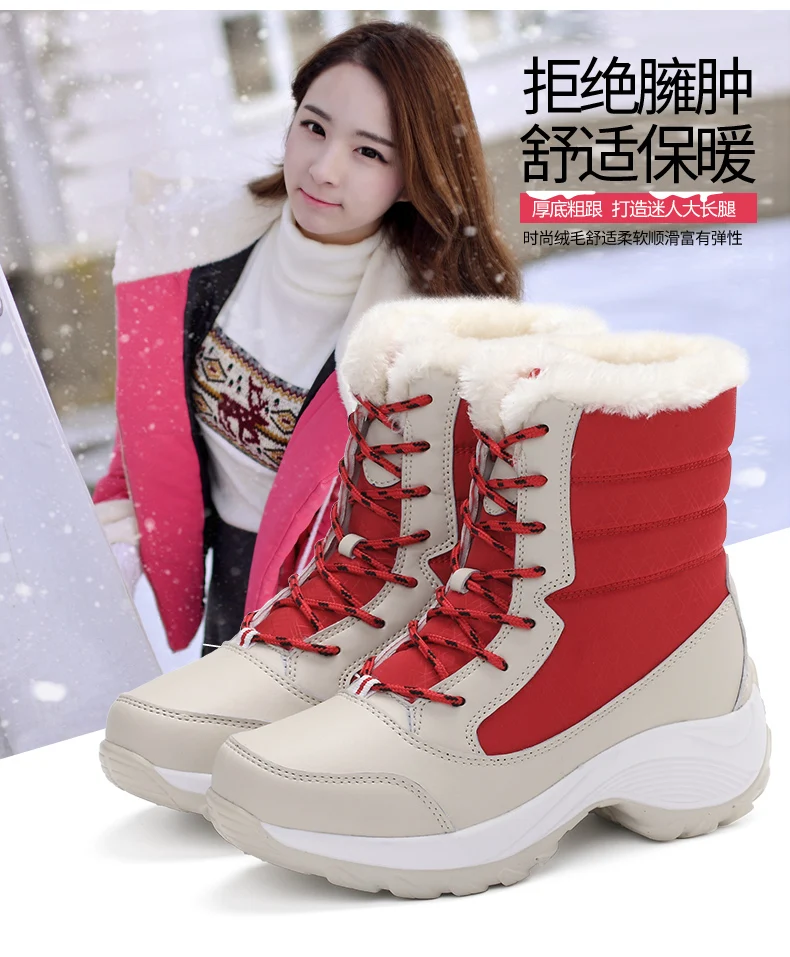 Водонепроницаемые плюшевые зимние ботинки женская обувь зимняя обув...
