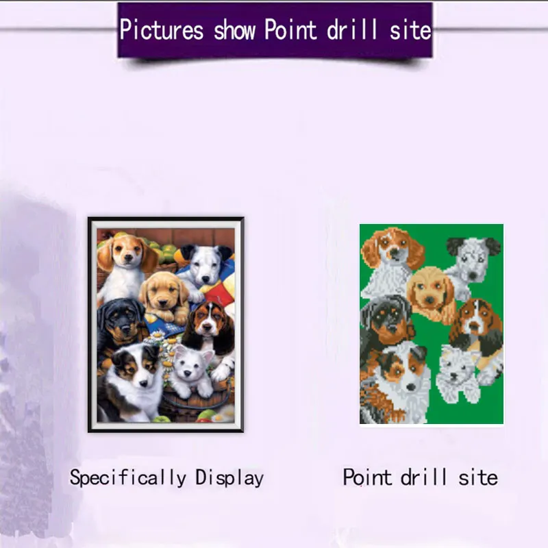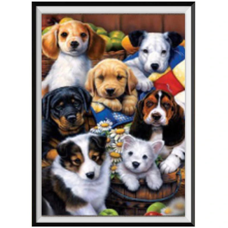 Алмазная 5D картина сделай сам, мультяшное животное, семь собак, Круглая Мозаика, украшение для дома, ручная работа, подарок на Новый год